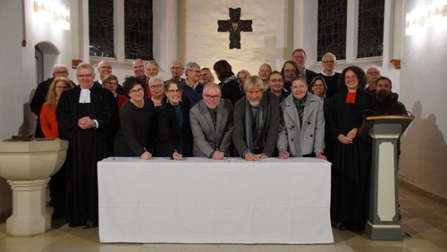 Am Reformationstag, 31.10.2025, haben Vertreter:innen der Leitungsgremien der Evangelischen Kirchengemeinden Beckum, Ennigerloh, Neubeckum, Oelde und Wadersloh im Rahmen eines gemeinsamen Gottesdienstes eine Kooperationsvereinbarung für die fünf Gemeinden unterzeichnet. Musikalisch gestaltet wurde der Abend von einer eindrucksvollen Bandbreite kirchenmusikalischer Gruppen aus Beckum: Der Evangelische Posaunenchor, der Ökumenische Kirchenchor, die Doppelpunkt-Band und ein Projektchor sorgten gemeinsam für einen festlichen und zugleich modernen Klangrahmen. Durch die Liturgie führte Pfarrerin Madita Nitschke, die Predigt hielt der Superintendent des Evangelischen Kirchenkreises Gütersloh Frank Schneider. Wer nicht dabei sein konnte, hat die Möglichkeit, sich diesen besonderen Gottesdienst hier noch einmal anzuschauen.